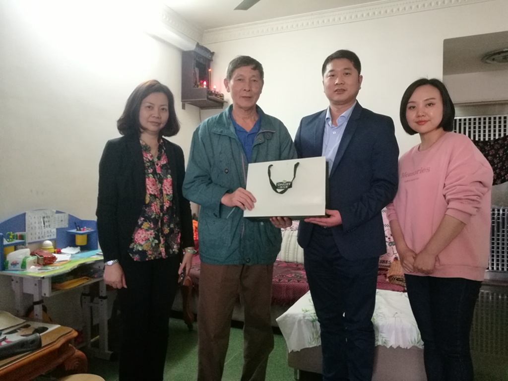 If fire can warm the body, then love must be the one that can warm the heart. On January 28th (during the Chinese New Year), FONO CARE actively organized a public welfare activity called "Gathering Love and Passing Warmth". Cheng Qianpeng, Assistant General Manager of FONO CARE, Xu Yan, Director of Civil Affairs Department in Haizhu District, and Mai Qiaoyun, Director of Jiangnan Avenue South Community Neighborhood Committee, led a delegation to visit Changgang Street in Haizhu District to offer condolences to families in need and elderly party members, offering them condolence items and holiday blessings.